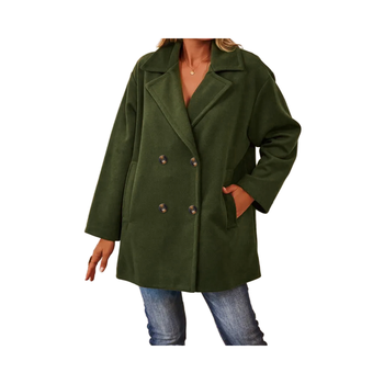 Verde hierba Cómodo Ajuste holgado Versión delgada Diseño de doble botonadura Clásico Retro Feel Tallas grandes Abrigo de mujer