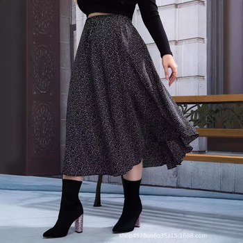 Của phụ nữ cao cấp hiện đại giả lụa ăn mặc cộng với kích thước đầy đủ in Dot mô hình Ngắn Tay Áo tự nhiên vòng eo ODM cung cấp