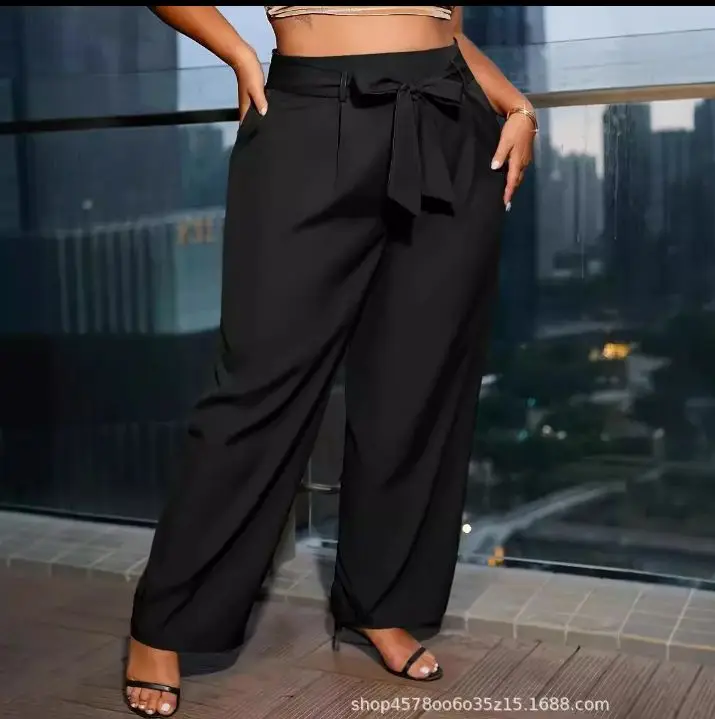 Châu Âu Mỹ xuyên biên giới của phụ nữ cộng với kích thước giản dị rộng chân quần Bow-Tie chi tiết màu sắc rắn cho AliExpress Amazon nước ngoài